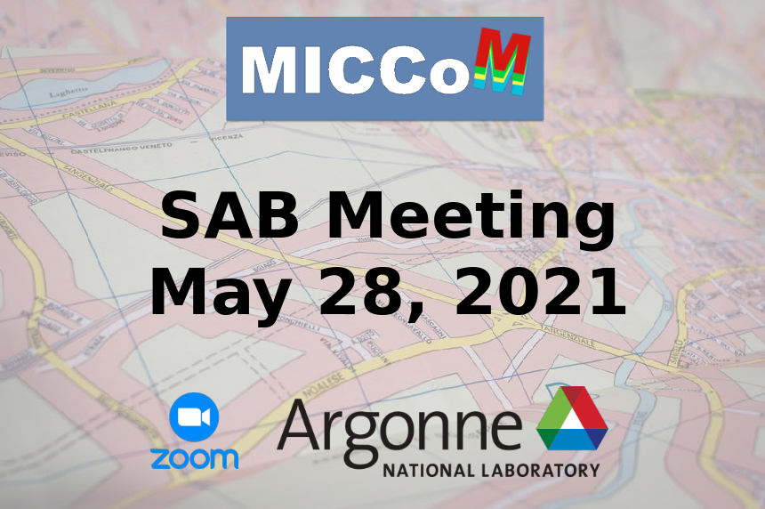 The Scientific Advisory Board meeting will place virtually on May 28, 2021. Members of the Scientific Advisory Board met with MICCoM PIs and participants to discuss current work and future directions of the center. The agenda will include highlights from ongoing research as well as discussions on developments of software and hardware within the center.