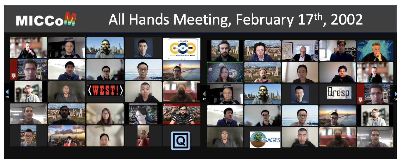 MICCoM held a virtual All-Hands meeting on Feb. 17th, 2022. All MICCoM PIs and participants discussed current and future directions of the center.
