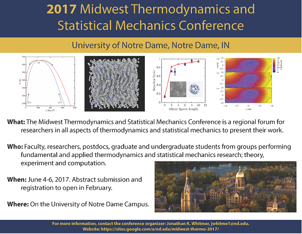 The conference, in its 30th year, focuses on the latest developments in experimental, computational and theoretical thermodynamics and statistical mechanics research.