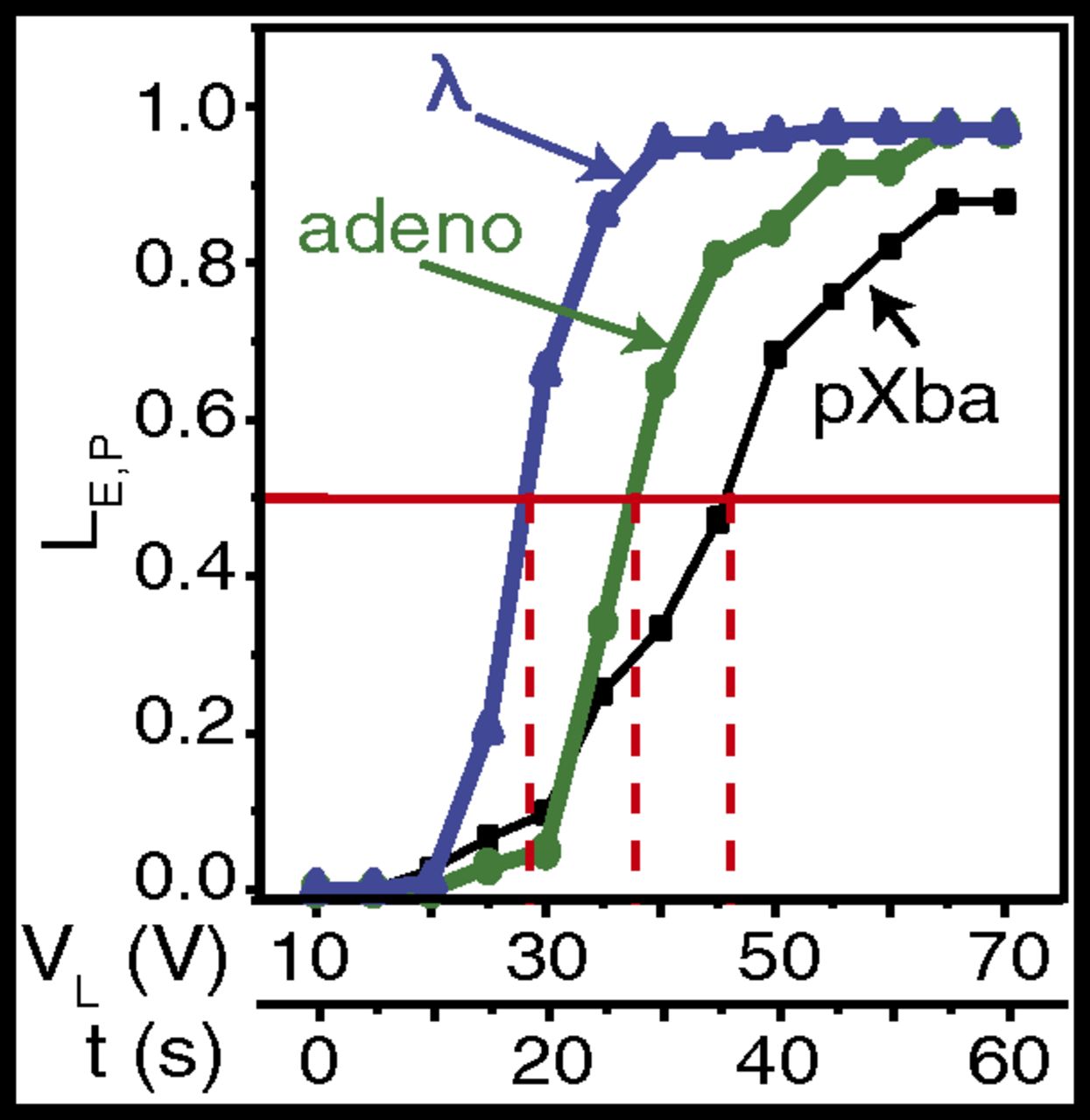 Very large DNA molecules enable comprehensive analysis of complex genomes, such as human, cancer, and plants because they span across sequence repeats and complex somatic events. When physically manipulated, or analyzed as single molecules, long polyelectrolytes are problematic because of mechanical considerations that include shear-mediated breakage, dealing with the massive size of these coils, or the length of stretched DNAs using common experimental techniques and fluidic devices. Accordingly, we harness analyte “issues” as exploitable advantages by our invention and characterization of the “molecular gate,” which controls and synchronizes formation of stretched DNA molecules as DNA dumbbells within nanoslit geometries. Molecular gate geometries comprise micro- and nanoscale features designed to synergize very low ionic strength conditions in ways we show effectively create an “electrostatic bottle.” This effect greatly enhances molecular confinement within large slit geometries and supports facile, synchronized electrokinetic loading of nanoslits, even without dumbbell formation. Device geometries were considered at the molecular and continuum scales through computer simulations, which also guided our efforts to optimize design and functionalities. In addition, we show that the molecular gate may govern DNA separations because DNA molecules can be electrokinetically triggered, by varying applied voltage, to enter slits in a size-dependent manner. Lastly, mapping the Mesoplasma florum genome, via synchronized dumbbell formation, validates our nascent approach as a viable starting point for advanced development that will build an integrated system capable of large-scale genome analysis.