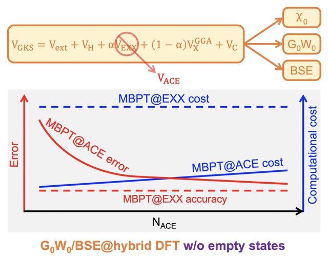 We report on the use of the adaptively compressed exchange (ACE) operator to accelerate many-body perturbation theory (MBPT) calculations, including G0W0 and the Bethe–Salpeter equation (BSE), for hybrid density functional theory starting points. We show that by approximating the exact exchange operator with the low-rank ACE operator, substantial computational savings can be achieved with systematically controllable errors in the quasiparticle energies computed with full-frequency G0W0 and the optical absorption spectra and vertical excitation energies computed by solving the BSE within density matrix perturbation theory. Our implementation makes use of the ACE-accelerated electronic Hamiltonian to carry out both G0W0 and BSE without explicitly computing empty states. We show the robustness of the approach and present the computational gains obtained on both the central processing unit and graphics processing unit nodes. Our work will facilitate the exploration and evaluation of fine-tuned hybrid starting points aimed at enhancing the accuracy of MBPT calculations without involving computationally demanding self-consistency in Hedin’s equations.